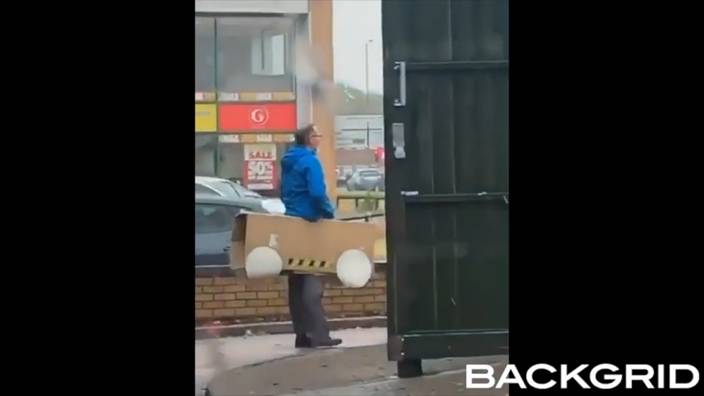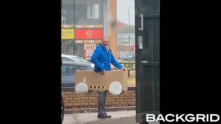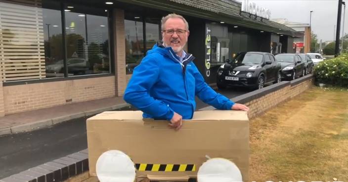 在英國當地一家麥當勞的汽車通道上就排起了長長的車龍,而這當中有一位男子卻開了一輛十分特別的車。這位名叫李•沃森(Lee Watson)的57歲男子竟是套著一個紙箱車來買餐的,奇特的造型吸引大家關注。