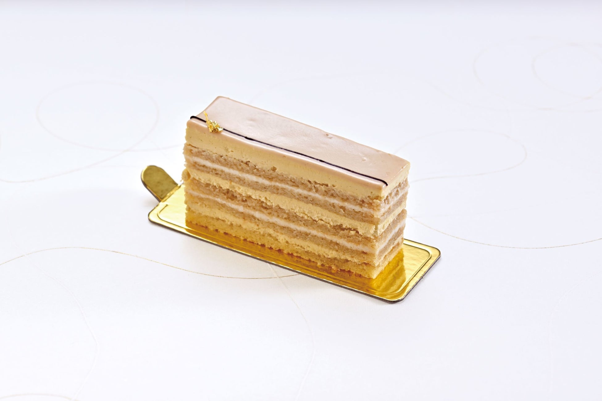 ロンネフェルト社の高級紅茶を使用した紅茶のバタークリームとフランス産ホワイトチョコレートのガナッシュで仕上げたオペラ。