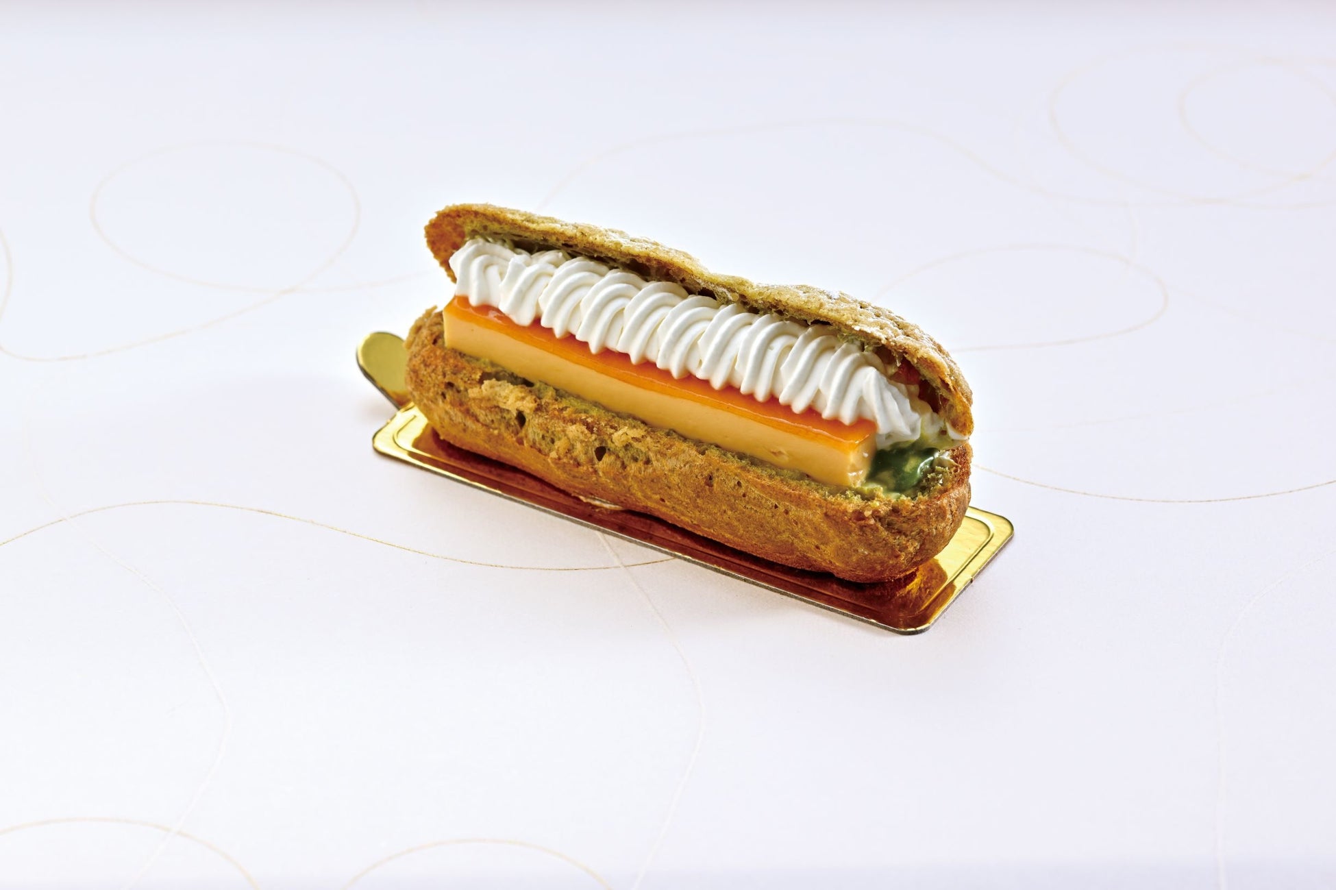 抹茶を配合したシュー生地の中には抹茶のカスタードクリームとソースが入った、抹茶を存分に楽しめる一品。