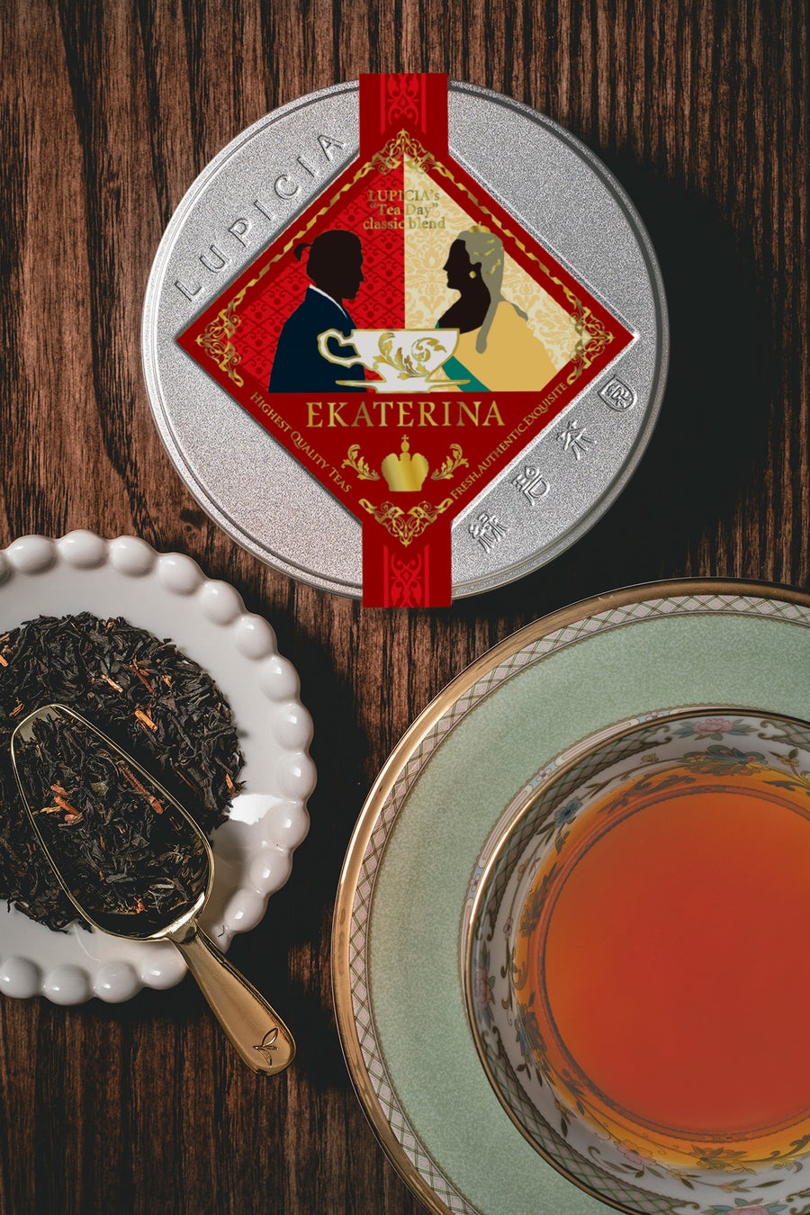 紅茶を初めて飲んだ日本人・大黒屋光太夫と女帝エカテリーナの出会いをイメージ。和紅茶と世界三大銘茶をブレンドした甘みのある優雅な味わい。ミルクティーも美味。