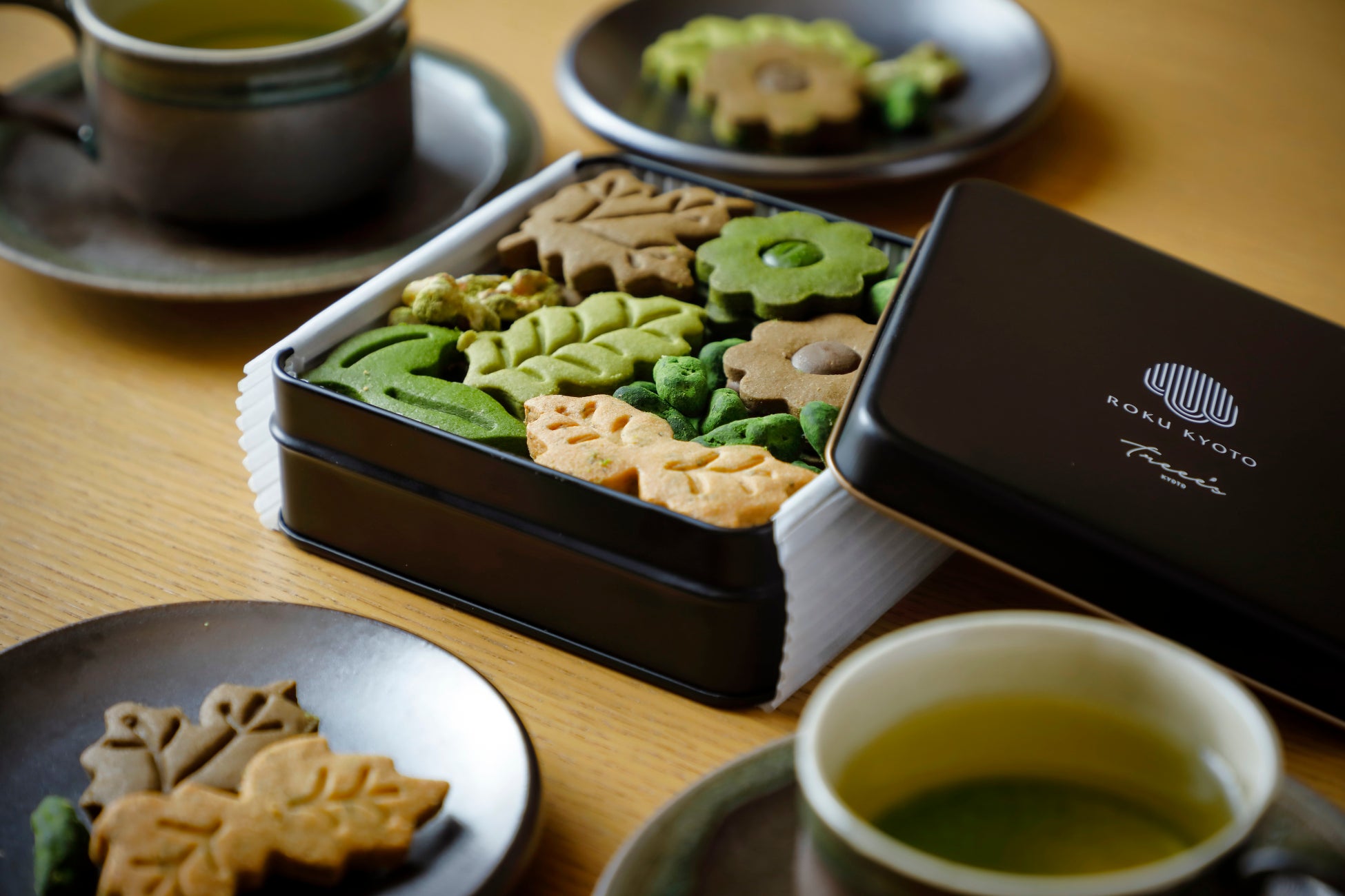 “グリーンを愉しむ”をコンセプトに、農薬や化学肥料を使わずに育てられた京都府産のオーガニック宇治抹茶を 100% 使用し、1枚1枚丁寧に焼き上げた米粉 100% のグルテンフリークッキーとナッツをセットにしました。抹茶やほうじ茶、玄米茶など、風味豊かなお茶の個性を味わえるラインナップに加え、厳選したシングルオリジン(単一品種)の抹茶の食べ比べが愉しめるアイテムなど、お茶の魅力を繊細に引き出したクッキーやナッツ全 9 種がぎっしりと詰め込まれています。中でも、古くから京都の人々に親しまれてきた京番茶をショコラと生地にたっぷりと練り込んだ「京番茶ショコラクッキー」は、ROKU KYOTOのクッキー缶でのみご賞味いただけるオリジナルフレーバーです。米粉ならではのホロホロとほどける優しい食感、口に広がる抹茶の香りと味わいにより、まるでお茶を食べているかのような感覚をご堪能いただけます。手土産やおもてなし、自分へのご褒美スイーツとしてご利用ください。
