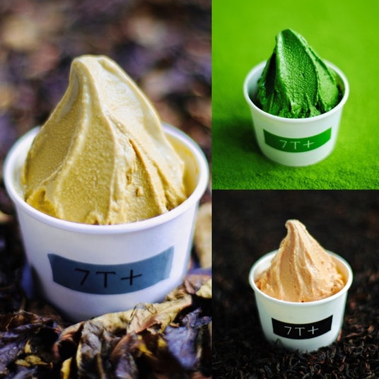 「7T+(セブンティープラス)」ジェラート(左)阿波晩茶(1個) 660円(右上).宇治抹茶うじひかり(1個)770円、(右下)和紅茶べにふうき(1個) 660円 ◎祝祭広場