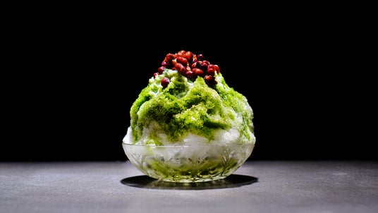 熊本県水俣産の自然栽培の抹茶を使用した自家製シロップと、店で炊いた小豆、練乳を合わせたかき氷。ほかに、「完熟梅とアールグレイのかき氷」と「ベリーとほうじ茶のかき氷」も販売。