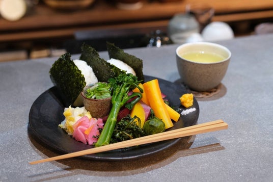 昼は、カウンターとテイクアウト可のティースタンドで営業。カウンターでは、越谷で自然栽培を行う「松下農園」や埼玉県北葛飾郡松伏町の「大館農園」で採れた新鮮野菜と土鍋ご飯の塩むすびをお茶と一緒にお召し上がりいただけます。また、き茶セット(水出し茶3種と採れたて野菜3種/1,200円)もご用意しています。